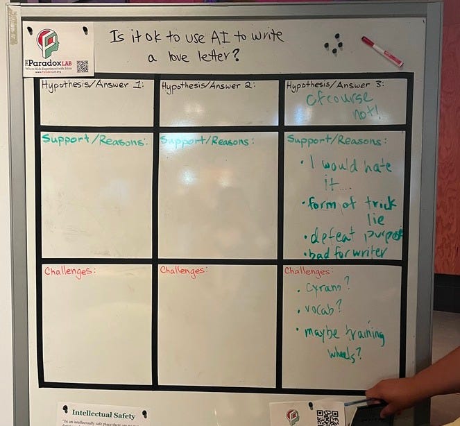 👆 Max and I brainstorming with a friendly philosopher from the Santa Cruz University whether it is OK to use AI to write a love letter? Is it?