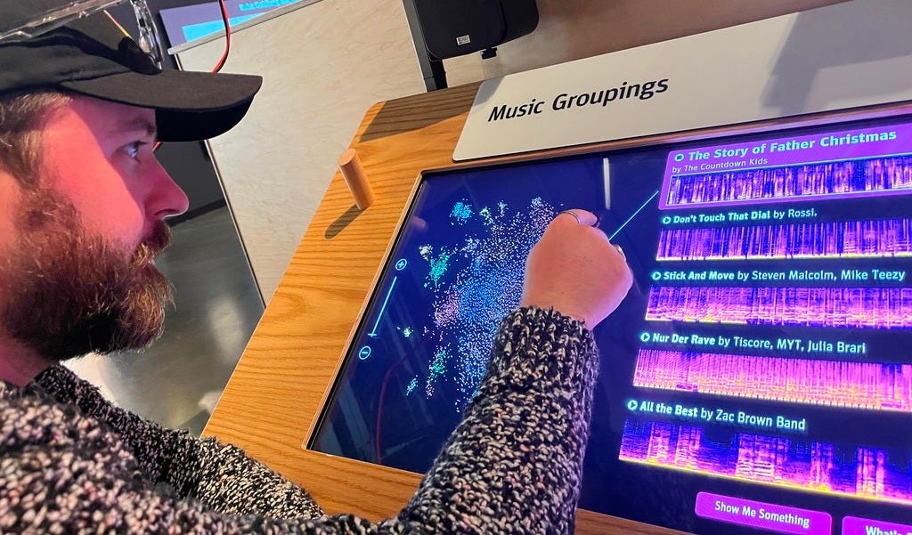 👆 music grouping exploration was extremely exciting: see that map made of thousands of dots? each of them is a song or music, and they’re gathered in nods of similar genres. Such an unusual way to explore music, I’d love to have his at home!