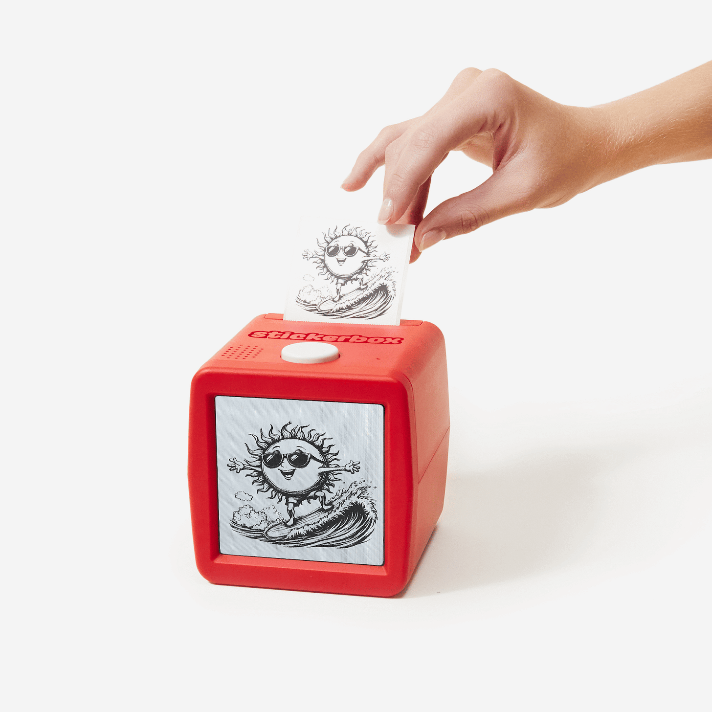 Meanwhile, I came across this new tool that consists of prompting a box out-loud and it instantly prints a sticker ready to be coloured. Fantastic, right?
